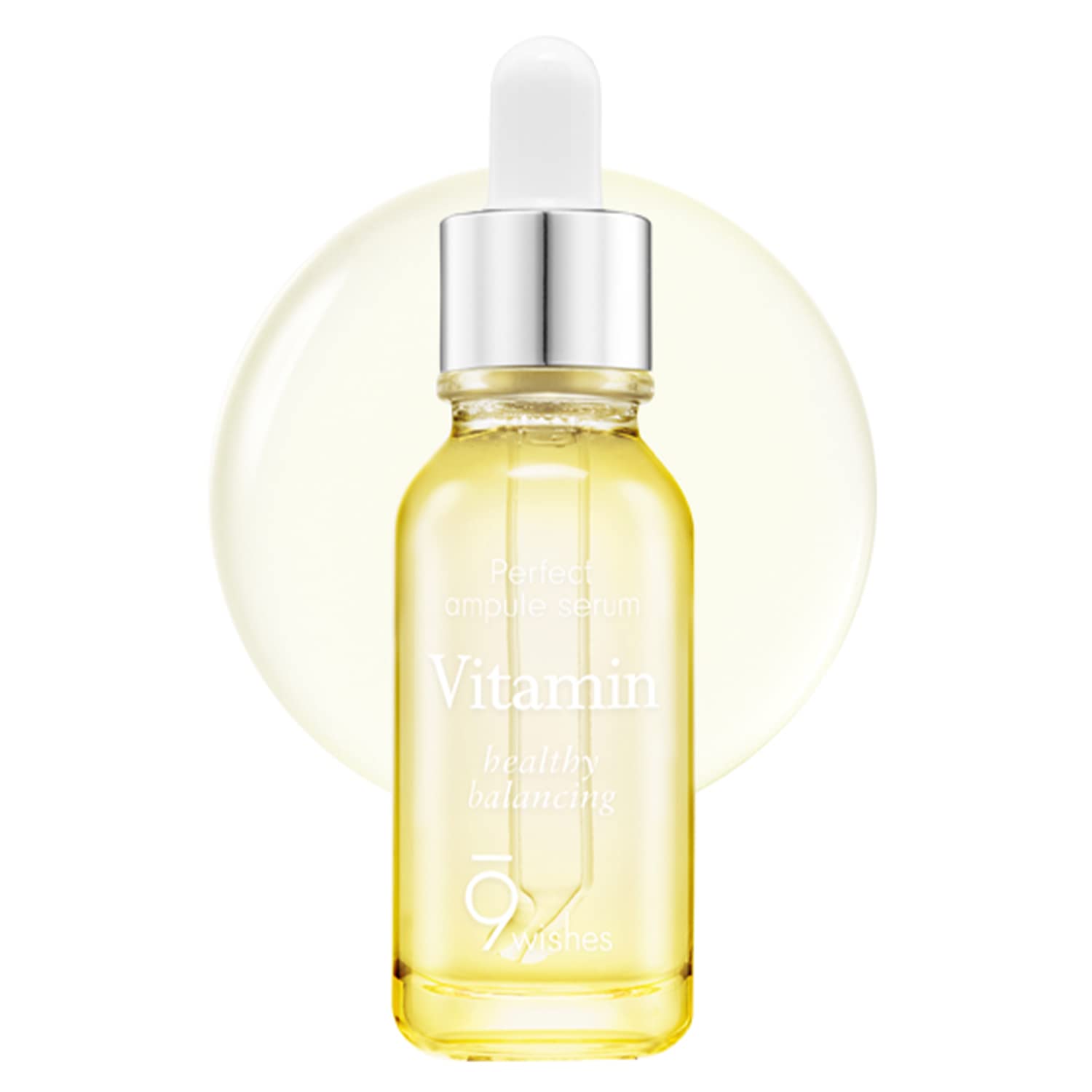 [9 wishes] Mega Vitamin C Ampule Serum - Helps Keep Skin Youthful with Vitamin C, B, E, Moist and Glowing by Reducing Look of Age and Dark Spots - 0.85Fl. Oz