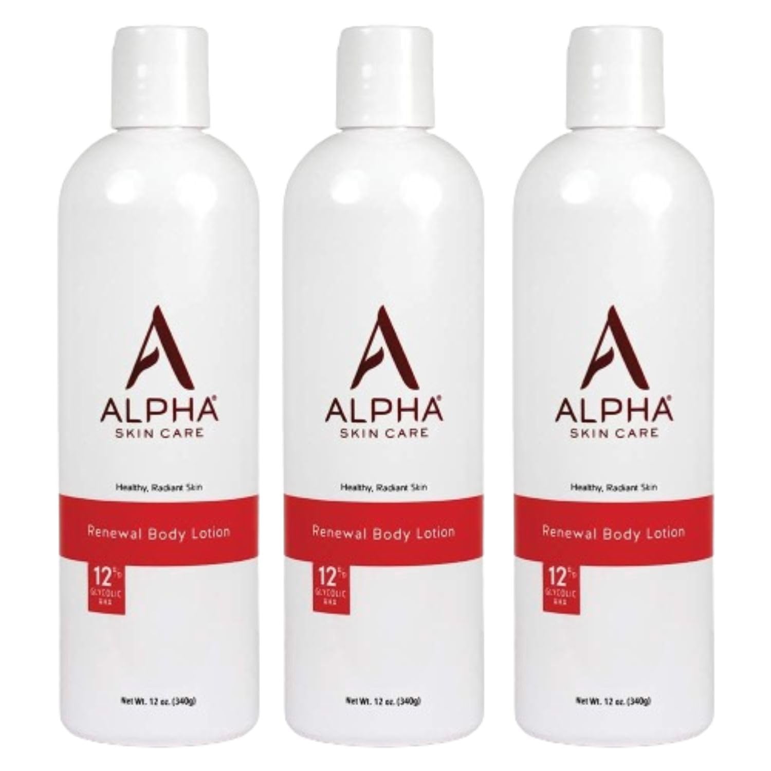 Alpha Skin Care Revitalizing Body Lotion with 12% Glycolic AHA, Simple and Effective Multi-Purpose Daily Moisturizer Hydrates and Exfoliates with Anti-Aging, 12 Oz (Pack of 3)