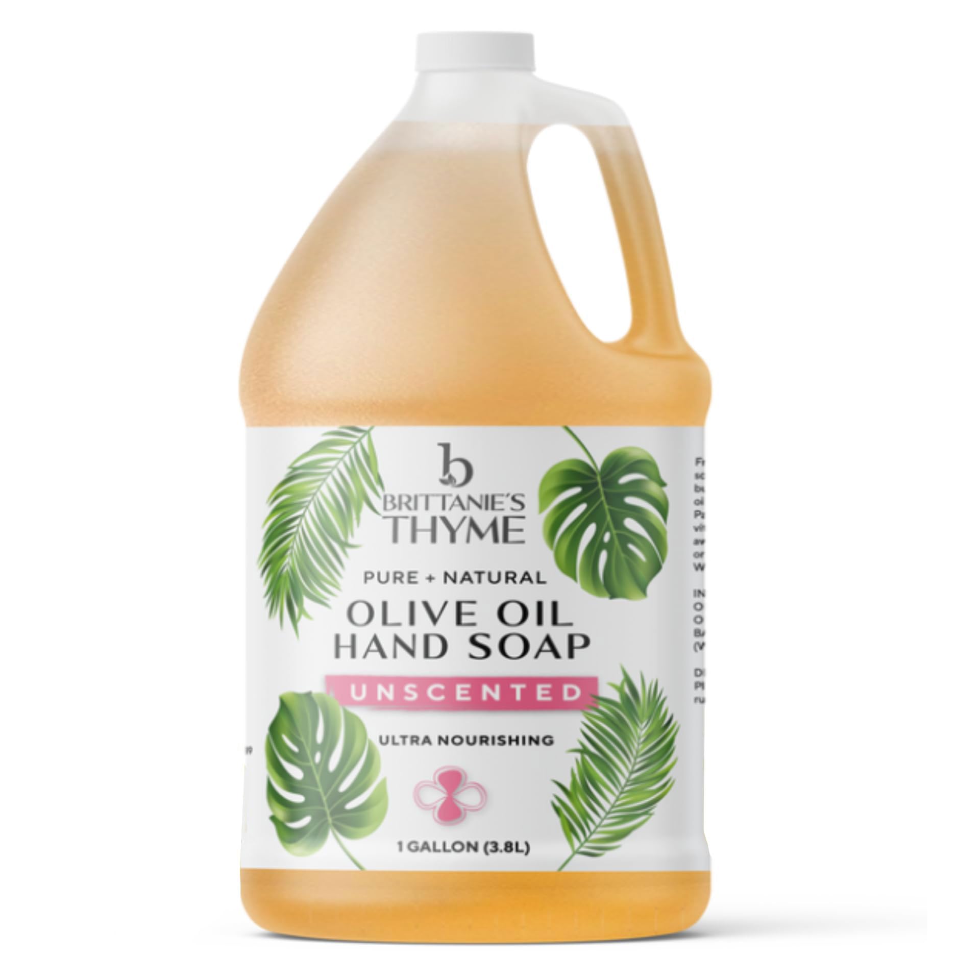 Brittanie's Thyme Organic Olive Oil Castile Liquid Soap Refill, 1 Gallon Unscented | Made with Natural Luxurious Oils, Vegan & Gluten Free Non-GMO, For Face, Body, Dishes, Pets & Laundry