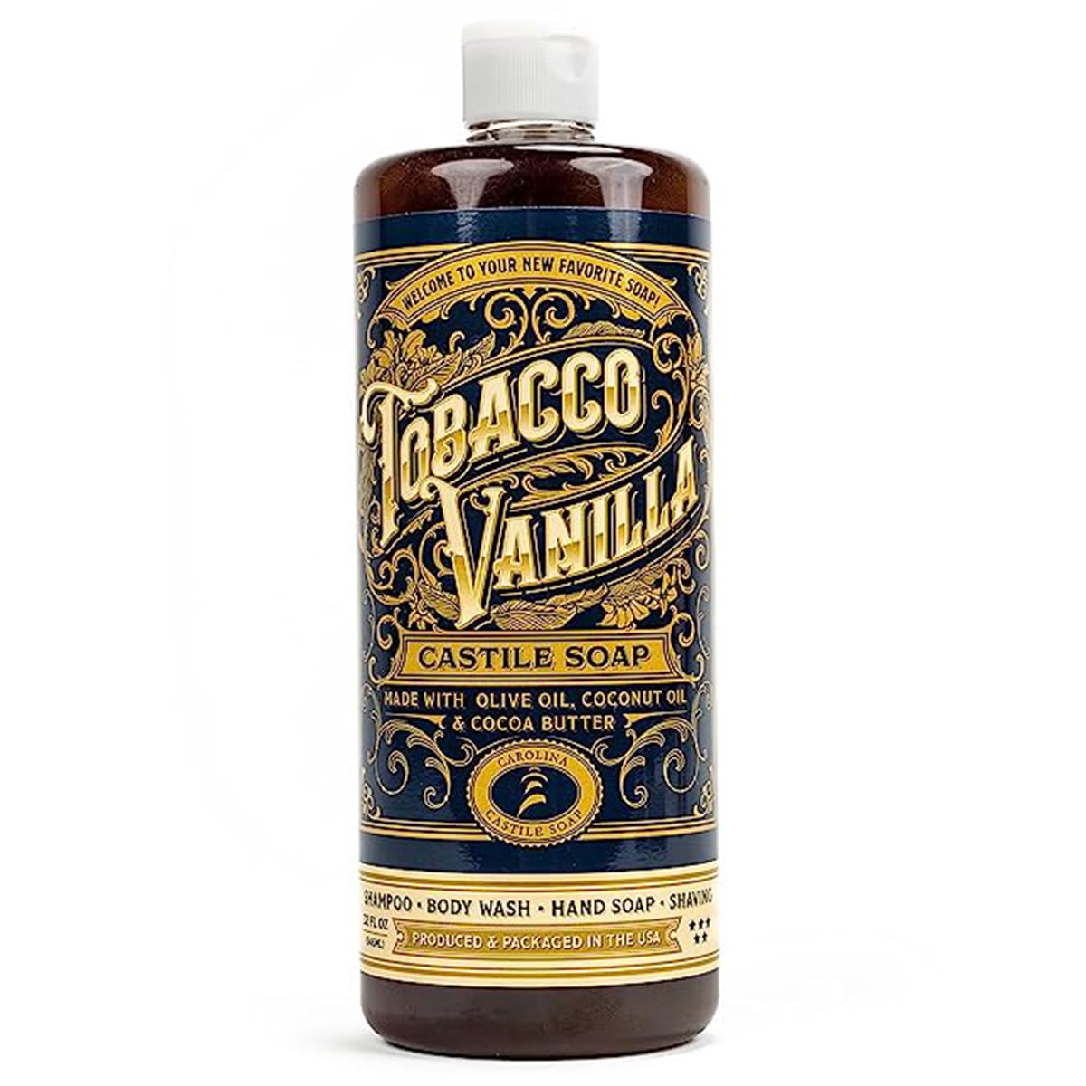 Castile Soap Liquid Body Wash Sensitive Skin �?Natural Soap for Men with Olive Oil, Cocoa Butter & Coconut Oil �?Vegan Mens Body Soap & Mens Shampoo �?Tobacco Vanilla Liquid Soap by Carolina Castile
